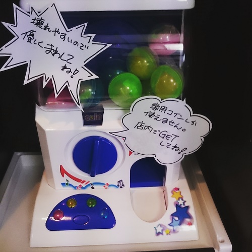 携帯ゲーム(展示用)…遊びたい方は声かけてくださいー。 ガチャガチャ…ゲームクリアで専用コインGET。 ギタコン&ドラコン…セッションどうぞー! パワーグローブ…使えるもんなら使ってみろー。 ラオウとバッファロー…ウチの用心棒 レナ隊員…ウチのアイドル ドクロ…他にもどこかにいます。