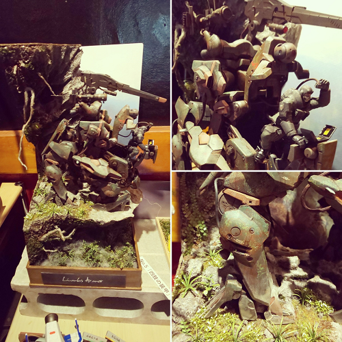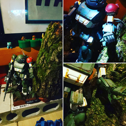 「ボトムズ」よりレッドショルダー登場。リアルさよりもオーバーな汚しがアニメ作品らしい!使い込まれた感がいかにもスコタコっぽい。そして、使用されてる木は生木!苔も生きてますwww まさに進化するジオラマ!