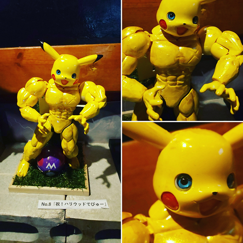 なにがどうなったらこんな組み合わせの発想が浮かぶのか…。もはや凡人には理解不能w 圧倒的な存在感を出しています。ピカチュウの目がドールアイなのでコワイです。子供が見たら絶対泣くwww