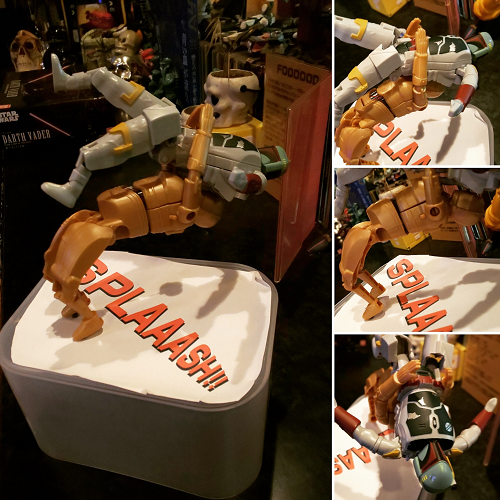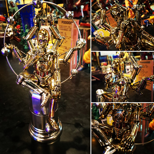 C-3POを2個使って菩薩を表現。なんといっても6本の腕のバランスがお見事!このまま商品として売られててもなんら不思議でもない。ポージングの為に各関節部にも加工がされてます。台座はモンダミンのキャップ!!